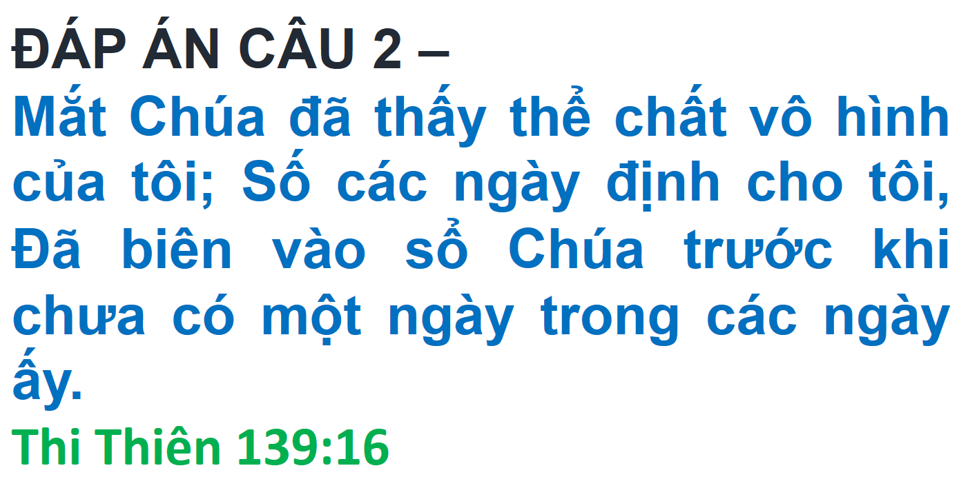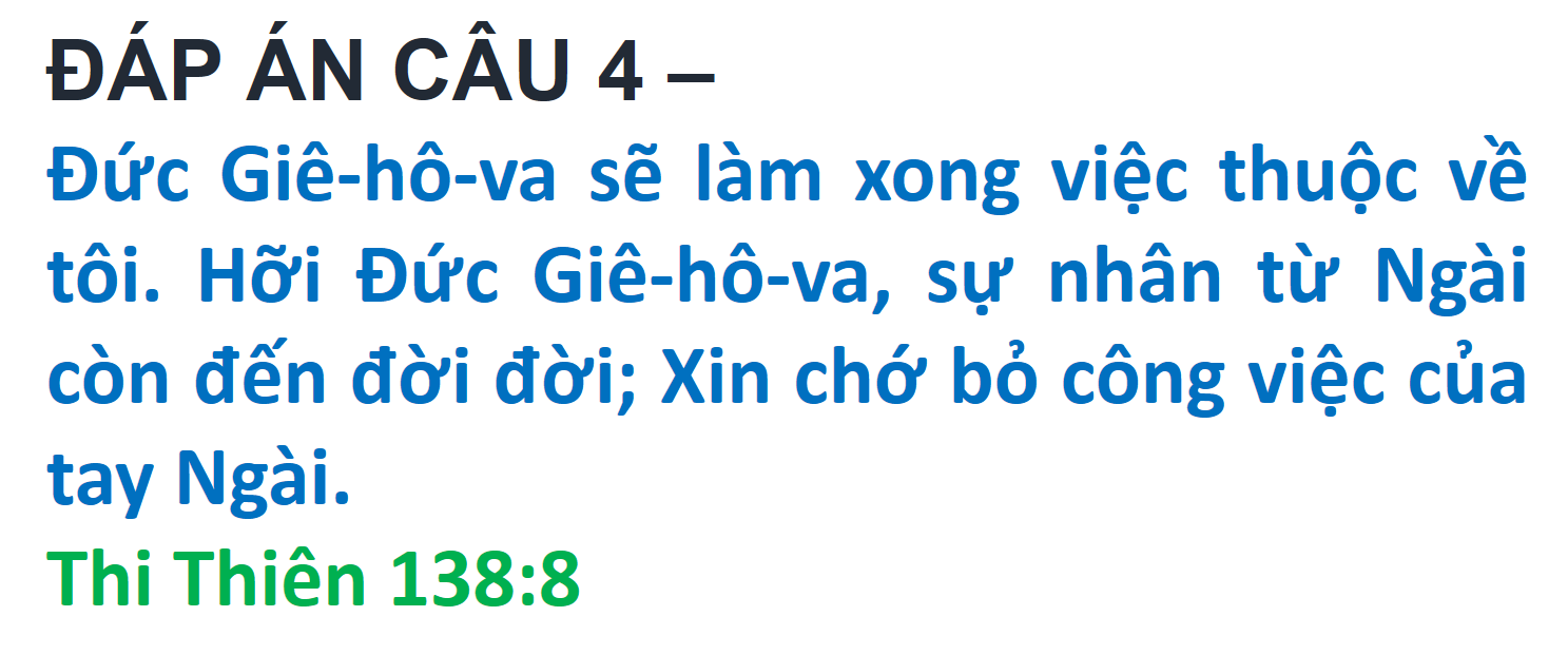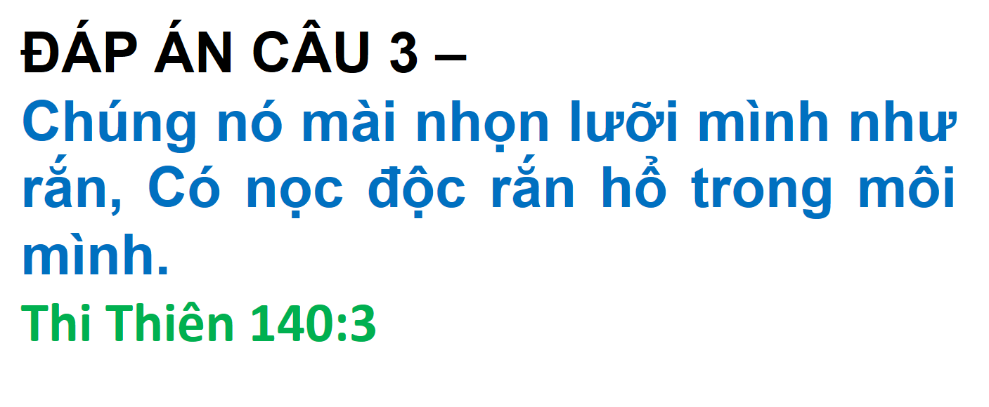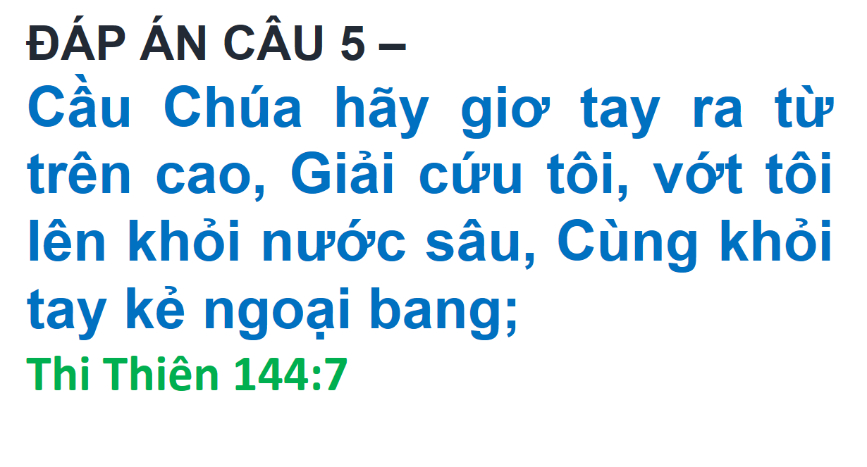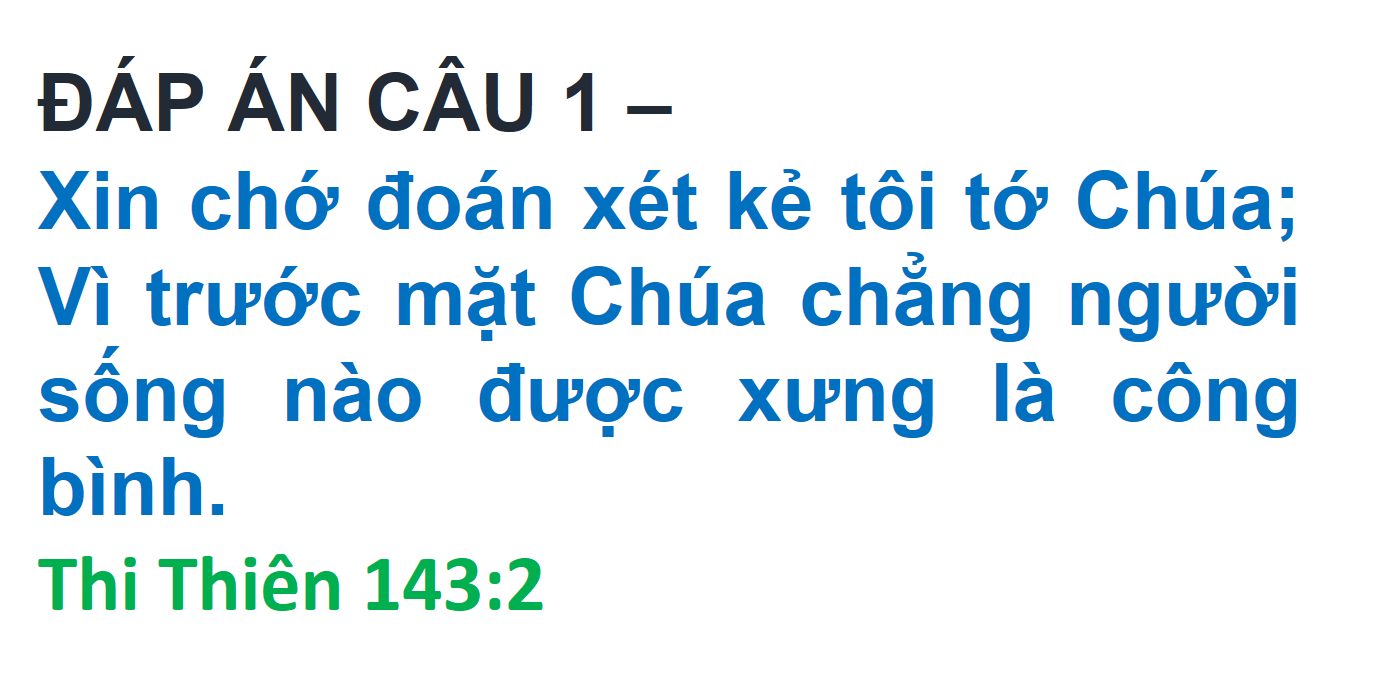 ĐÁP ÁN VÀ KẾT QUẢ ĐỐ KINH THÁNH SỐ 260