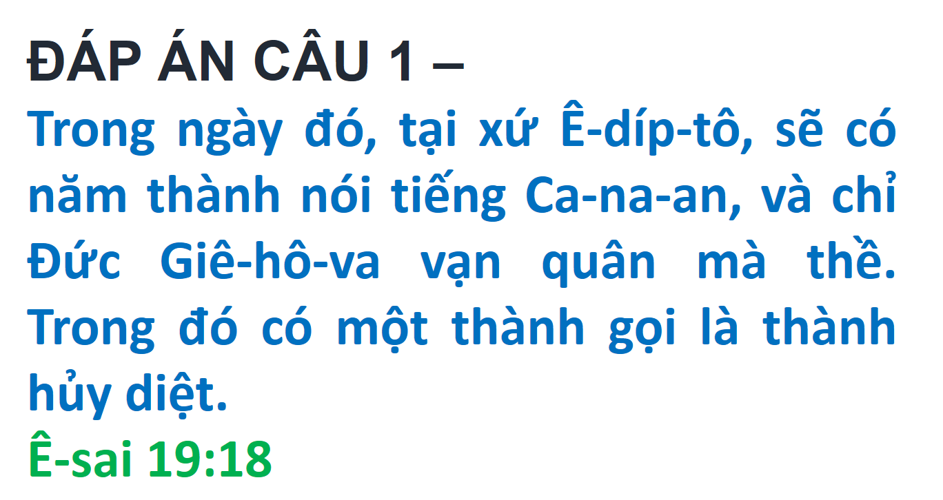 ĐÁP ÁN VÀ KẾT QUẢ ĐỐ KINH THÁNH SỐ 272