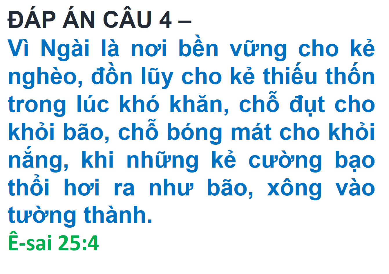 ĐÁP ÁN VÀ KẾT QUẢ ĐỐ KINH THÁNH SỐ 273
