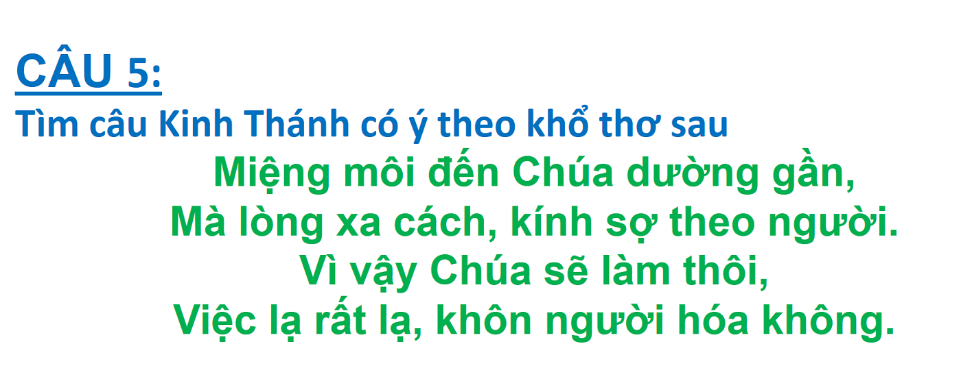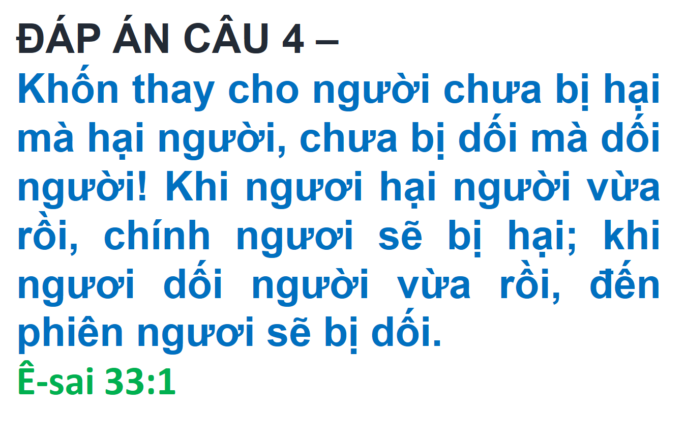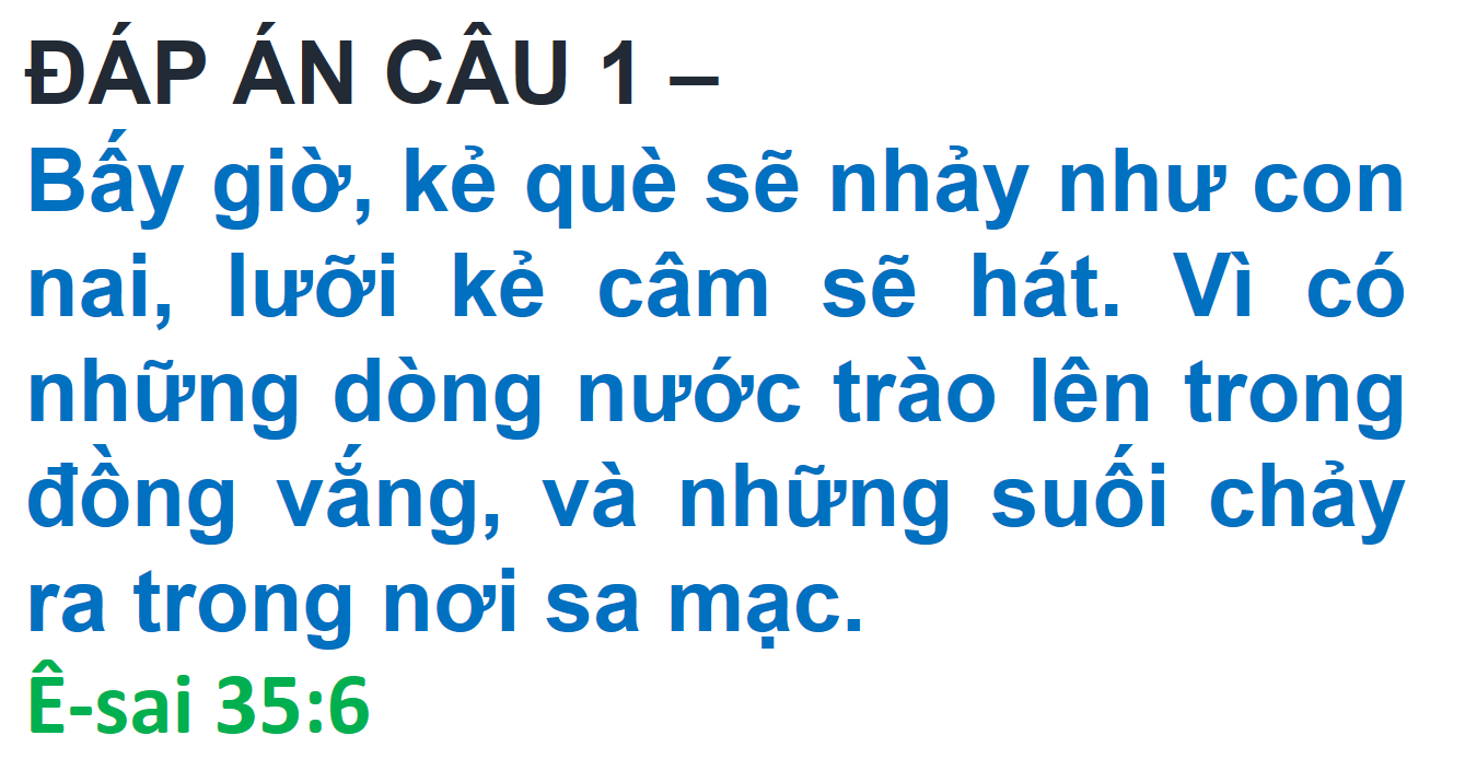 ĐÁP ÁN VÀ KẾT QUẢ ĐỐ KINH THÁNH SỐ 274