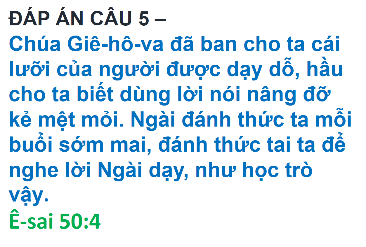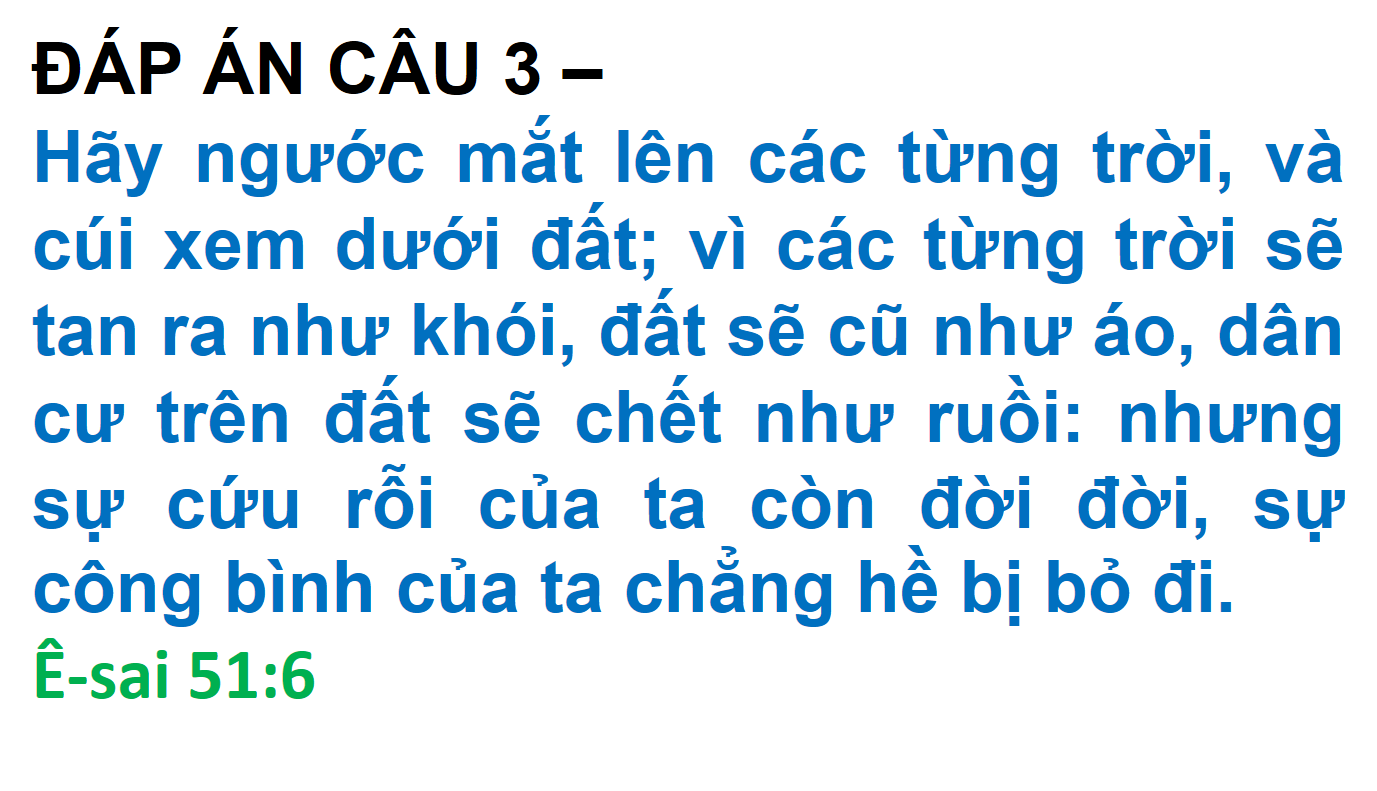 ĐÁP ÁN VÀ KẾT QUẢ ĐỐ KINH THÁNH SỐ 277