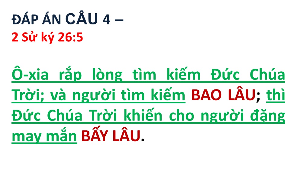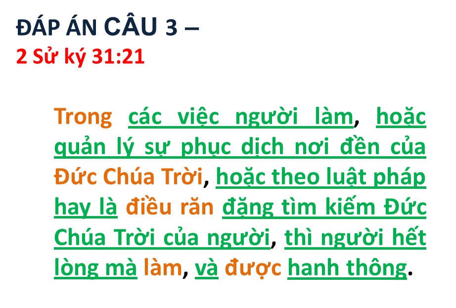 ĐÁP ÁN VÀ KẾT QUẢ ĐỐ KINH THÁNH SỐ 101