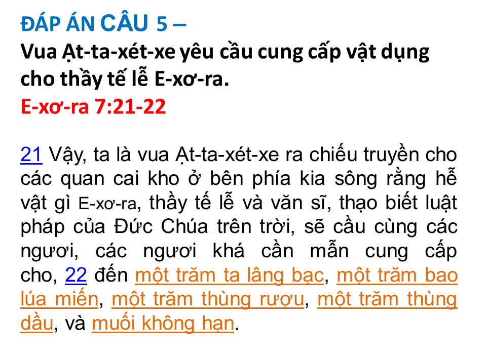 ĐÁP ÁN VÀ KẾT QUẢ ĐỐ KINH THÁNH SỐ 102
