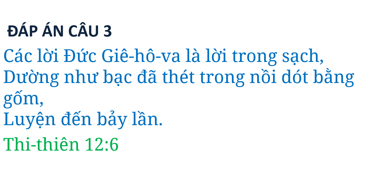 ĐÁP ÁN VÀ KẾT QUẢ ĐỐ KINH THÁNH SỐ 110