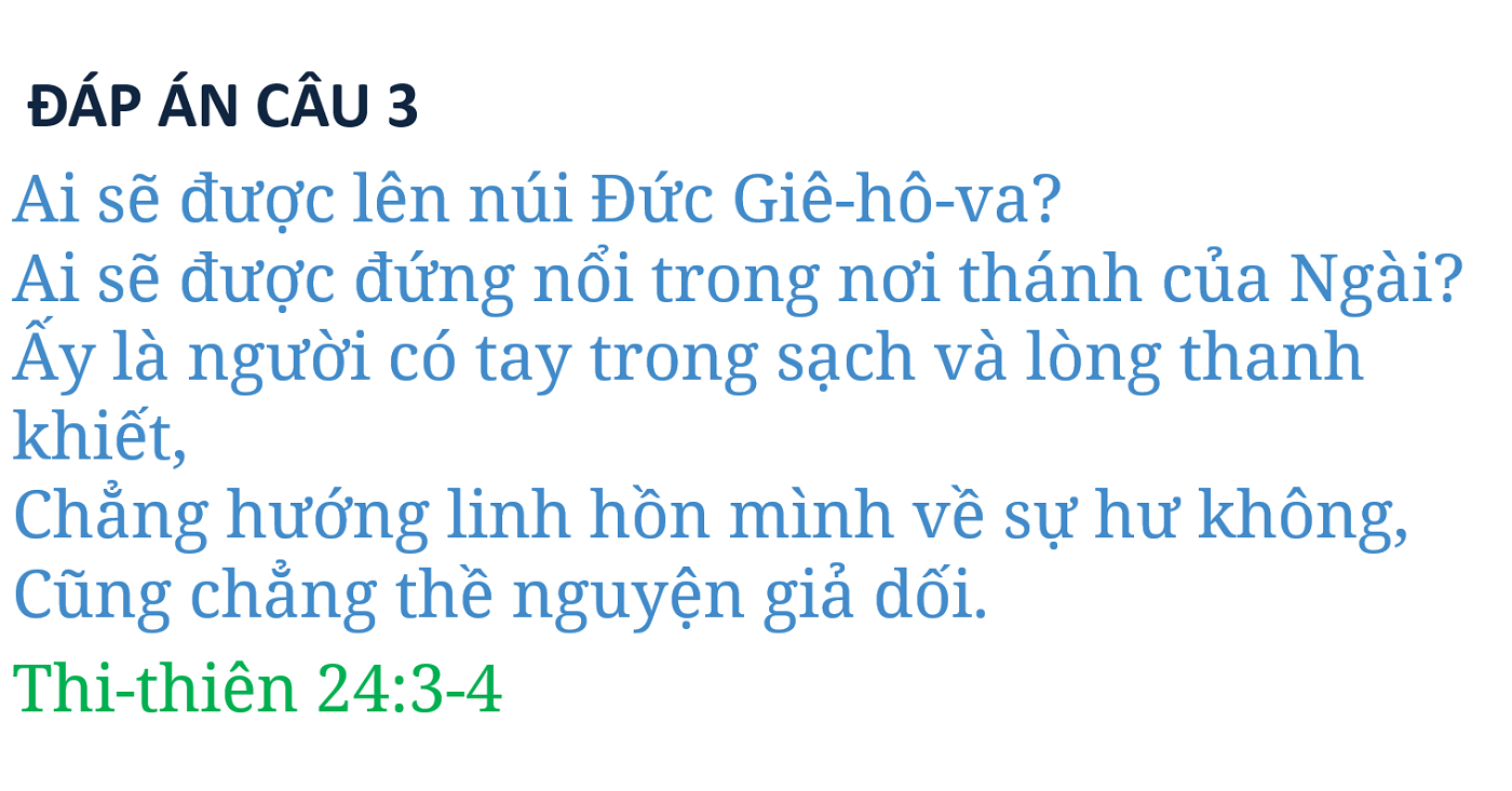 ĐÁP ÁN VÀ KẾT QUẢ ĐỐ KINH THÁNH SỐ 111