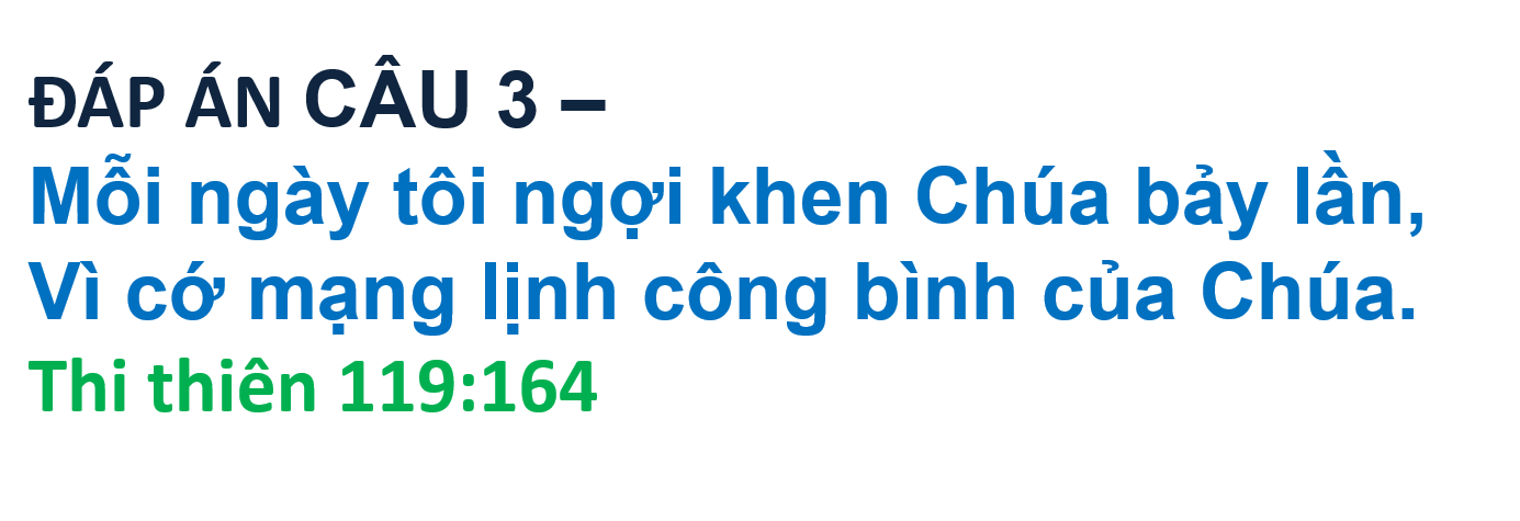 ĐÁP ÁN VÀ KẾT QUẢ ĐỐ KINH THÁNH SỐ 121