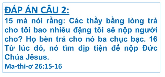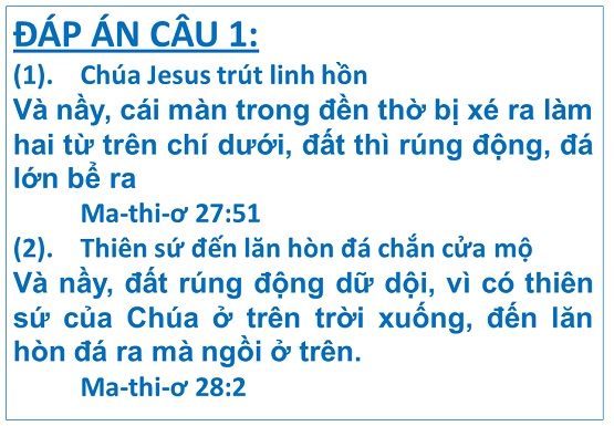 ĐÁP ÁN VÀ KÊT QUẢ ĐỐ KINH THÁNH SỐ 16/2020