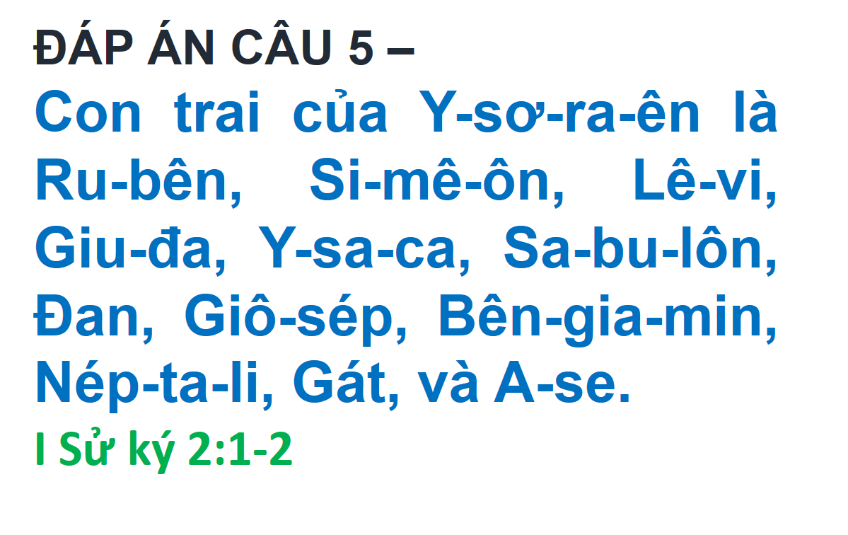 ĐÁP ÁN VÀ KẾT QUẢ ĐỐ KINH THÁNH SỐ 221