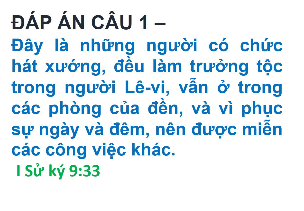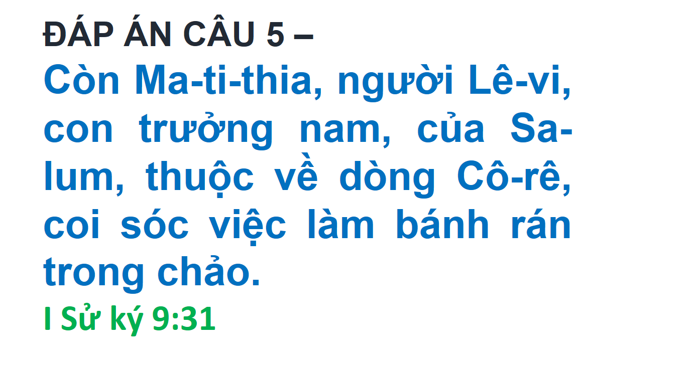 ĐÁP ÁN VÀ KẾT QUẢ ĐỐ KINH THÁNH SỐ 222