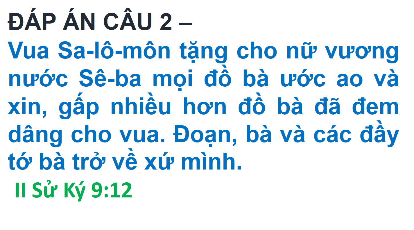 ĐÁP ÁN VÀ KẾT QUẢ ĐỐ KINH THÁNH SỐ 227