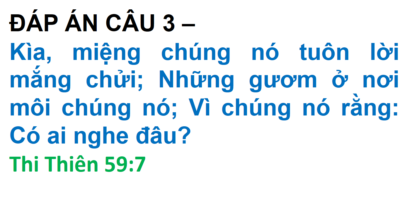 ĐÁP ÁN VÀ KẾT QUẢ ĐỐ KINH THÁNH SỐ 248