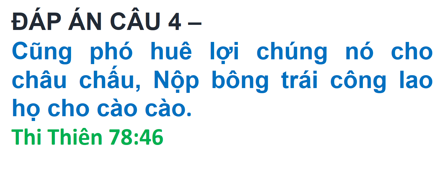 ĐÁP ÁN VÀ KẾT QUẢ ĐỐ KINH THÁNH SỐ 251