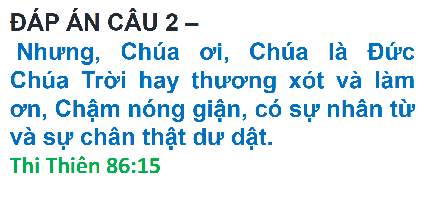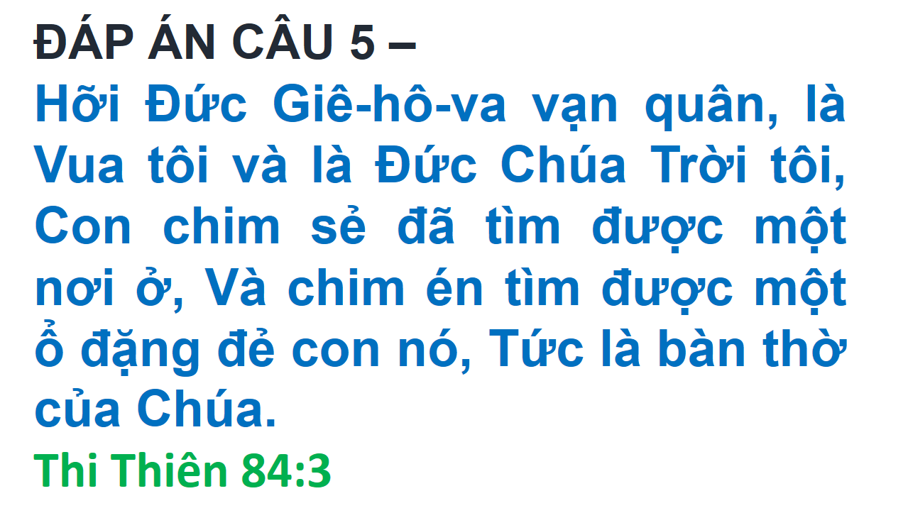 ĐÁP ÁN VÀ KẾT QUẢ ĐỐ KINH THÁNH SỐ 252