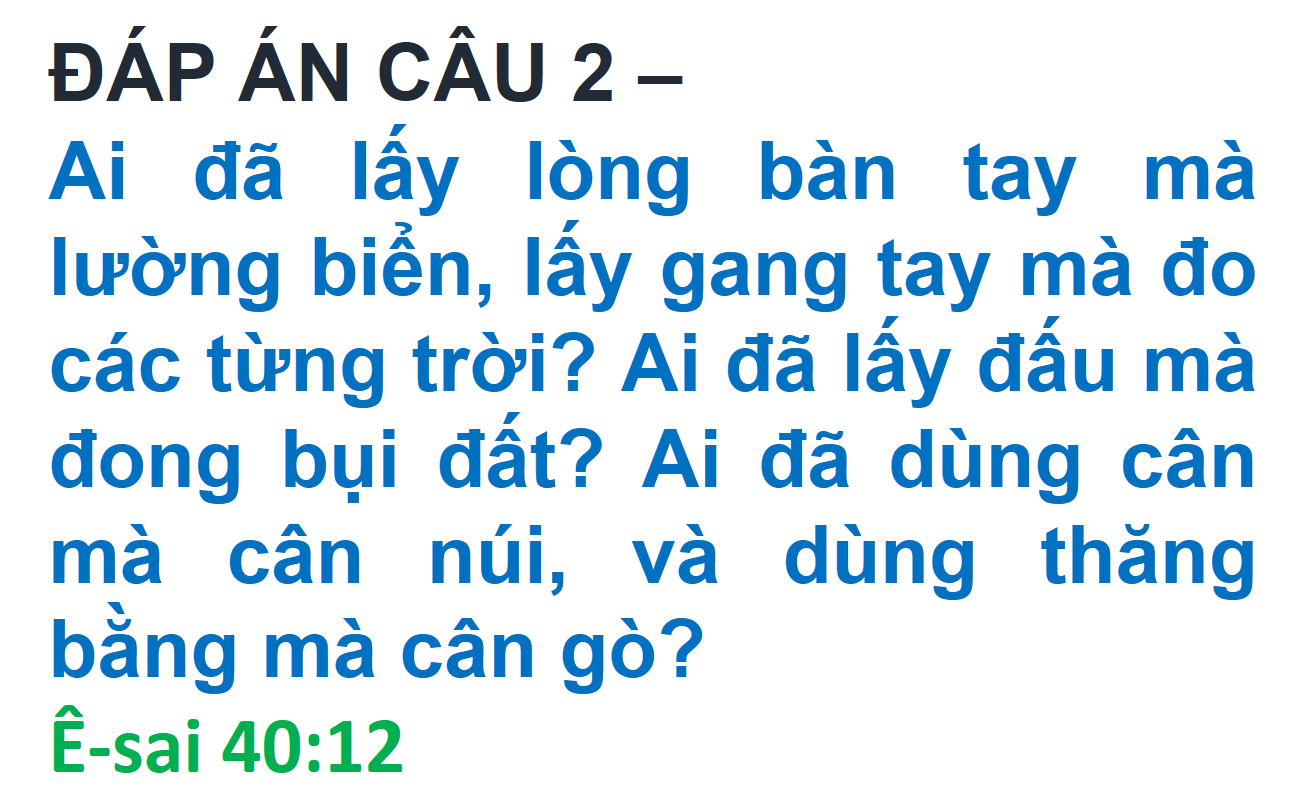ĐÁP ÁN VÀ KẾT QUẢ ĐỐ KINH THÁNH SỐ 275