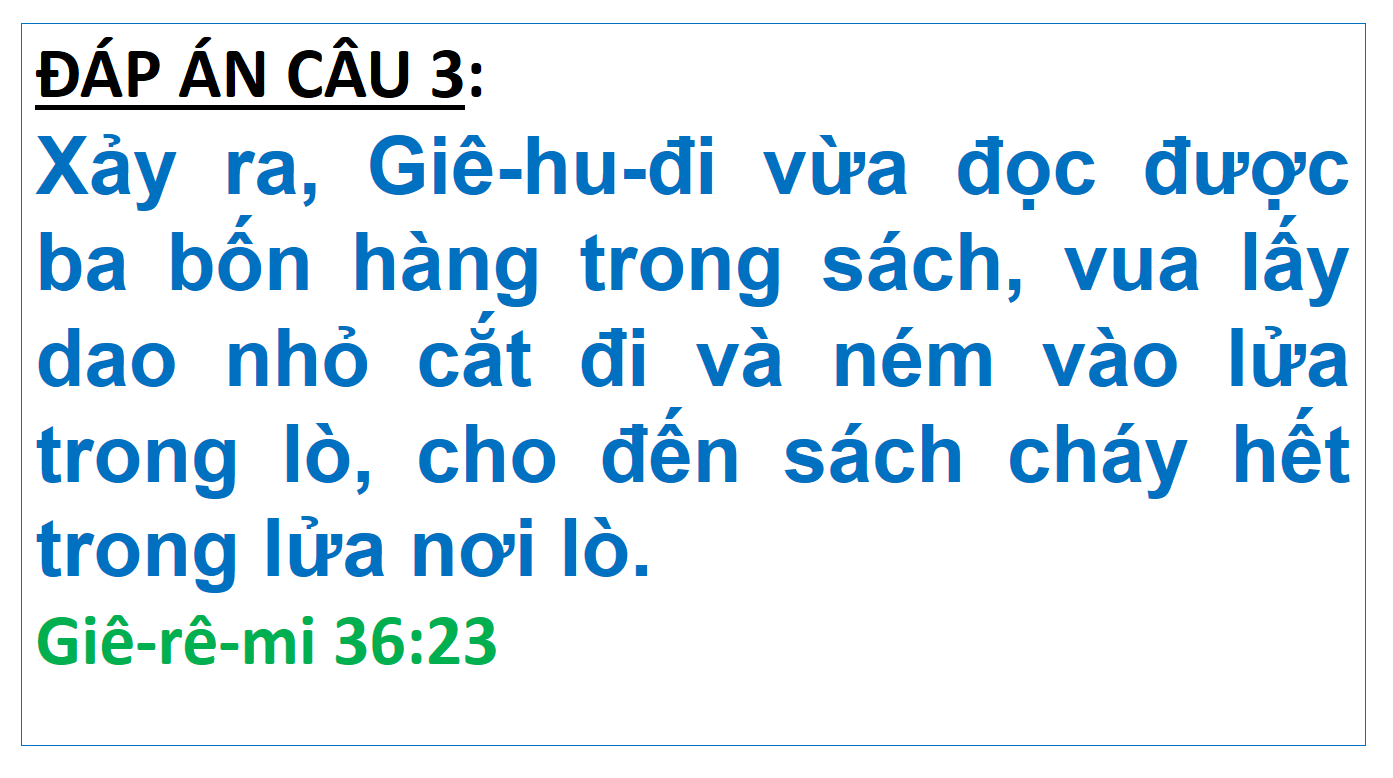 ĐÁP ÁN VÀ KẾT QUẢ ĐỐ KINH THÁNH SỐ 285