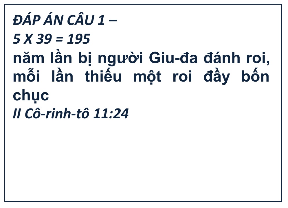 ĐÁP ÁN VÀ KẾT QUẢ ĐỐ KINH THÁNH SỐ 36