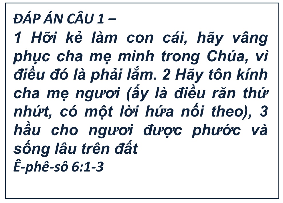 ĐÁP ÁN VÀ KẾT QUẢ ĐỐ KINH THÁNH SỐ 38