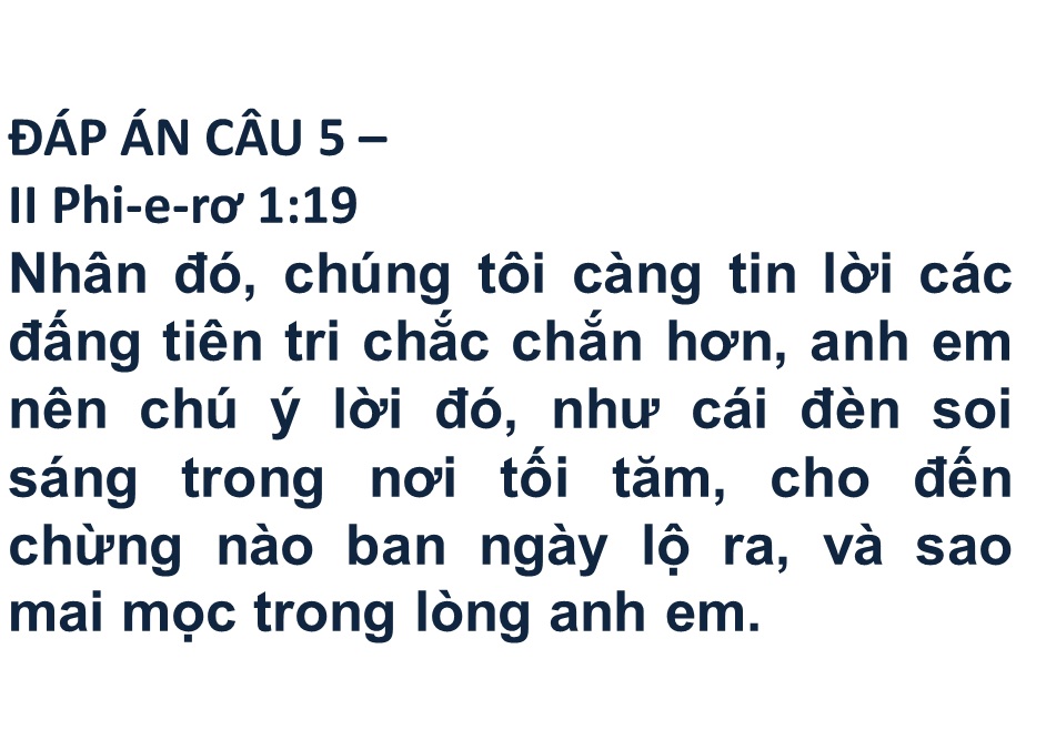 ĐÁP ÁN VÀ KẾT QUẢ ĐỐ KINH THÁNH SỐ 45