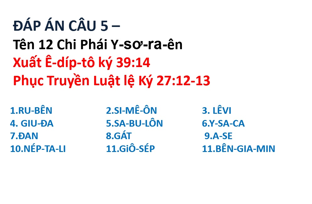 ĐÁP ÁN VÀ KẾT QUẢ ĐỐ KINH THÁNH SỐ 62