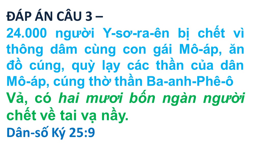 ĐÁP ÁN VÀ KẾT QUẢ ĐỐ KINH THÁNH SỐ 71
