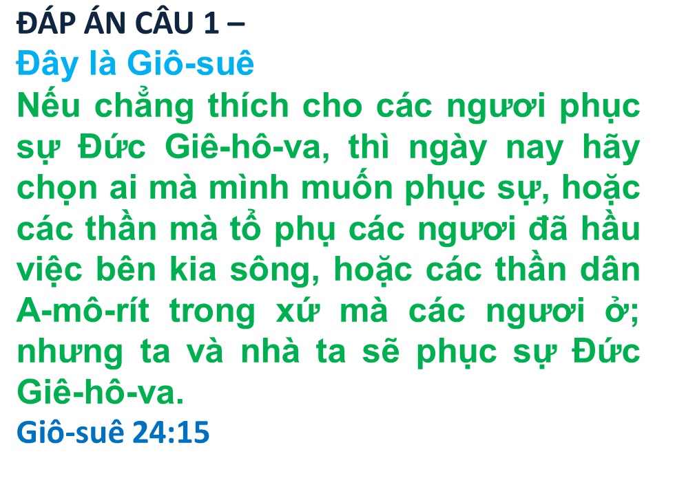 ĐÁP ÁN VÀ KẾT QUẢ ĐỐ KINH THÁNH SỐ 82