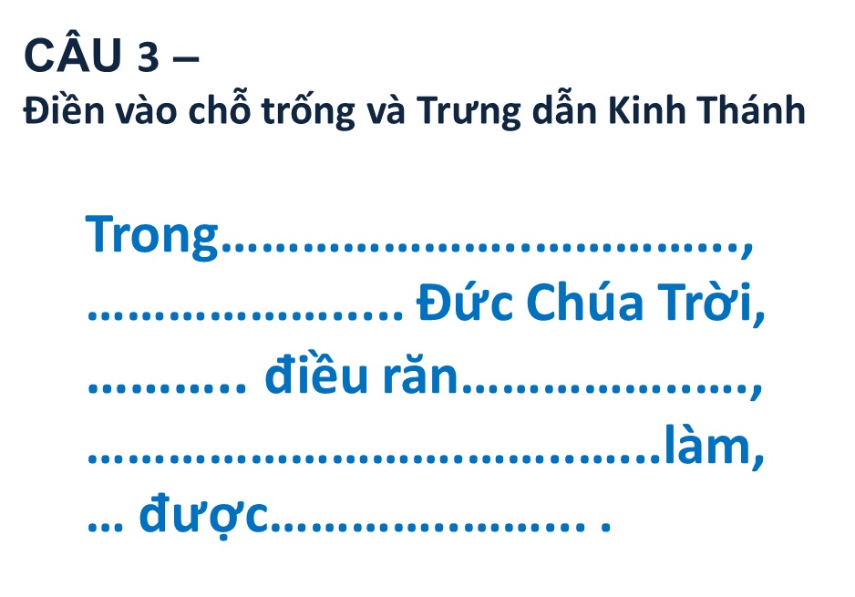Xin kính mời các con cái Chúa trong và ngoài HT Vĩnh Phước, tham gia mục đố Kinh Thánh, mỗi tuần có 5 câu đố sẽ được đăng trên Website và Facebook vào lúc 12h00 thứ Hai hàng tuần, đáp án và kết quả sẽ được giải đáp trước khi đăng câu đố mới.