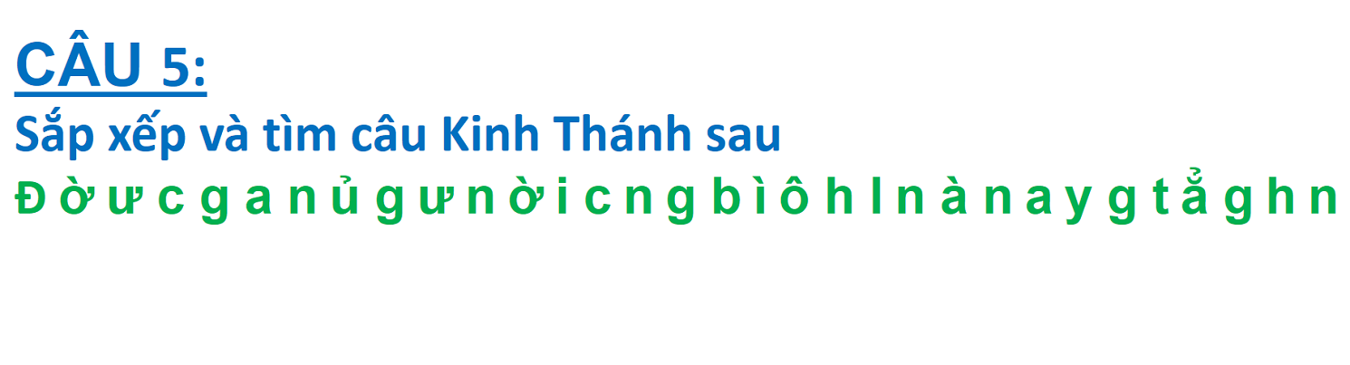 Xin kính mời các con cái Chúa trong và ngoài HT Vĩnh Phước, tham gia mục đố Kinh Thánh, mỗi tuần có 5 câu đố sẽ được đăng trên Website và Facebook vào lúc 12h00 thứ Hai hàng tuần, đáp án và kết quả sẽ được giải đáp trước khi đăng câu đố mới.