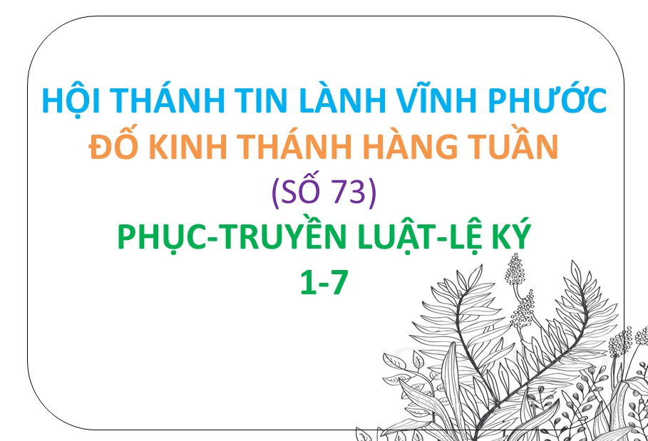 Xin kính mời các con cái Chúa trong và ngoài HT Vĩnh Phước, tham gia mục đố Kinh Thánh, mỗi tuần có 5 câu đố sẽ được đăng trên Website và Facebook vào lúc 12h00 thứ Hai hàng tuần, đáp án và kết quả sẽ được giải đáp trước khi đăng câu đố mới.