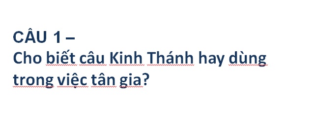 Xin kính mời các con cái Chúa trong và ngoài HT Vĩnh Phước, tham gia mục đố Kinh Thánh, mỗi tuần có 5 câu đố sẽ được đăng trên Website và Facebook vào lúc 12h00 thứ Hai hàng tuần, đáp án và kết quả sẽ được giải đáp trước khi đăng câu đố mới.