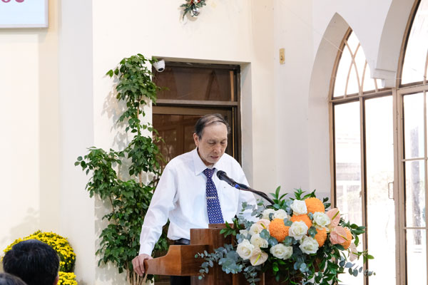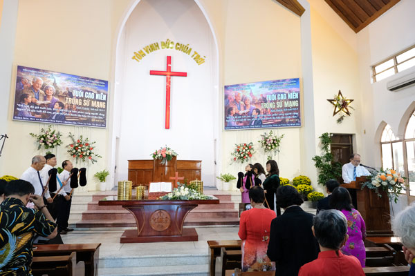 Sau đó, Mục sư Nguyễn Công Nghĩa, Quản nhiệm hội thánh đã cầu nguyện đặc biệt cho Ban Cao niên. Trong dịp nầy, Mục sư cũng đã dùng lời Chúa trong Giô suê 13:1-7 để khích lệ quý ông bà ở lứa tuổi Cao niên nắm lấy lời hứa trong Giô suê 1:3 mà hết lòng trung tín, tiếp tục phục vụ với lòng biết ơn Chúa về những việc Ngài đã làm trong cuộc đời mình suốt những năm tháng qua. Ống cũng nhắc nhở thế hệ nối tiếp cần theo gương các bậc Cao niên để đứng lên và bước tới trong linh trình.