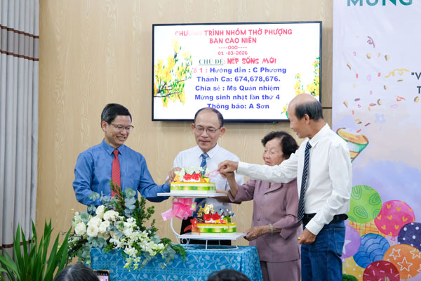 Buổi chiều, Chương trình Cảm tạ mừng sinh Nhật lần thứ IV của Ban Cao niên diễn ra tại phòng sinh hoạt Cao niên vào lúc 14g30, cô Nguyễn Thị Phương hướng dẫn. Có khoảng gần 80 người -gồm các thành viên Cao niên và khách mời- tham dự trong căn phòng được trang trí theo ý nghĩa của ngày sinh nhật.