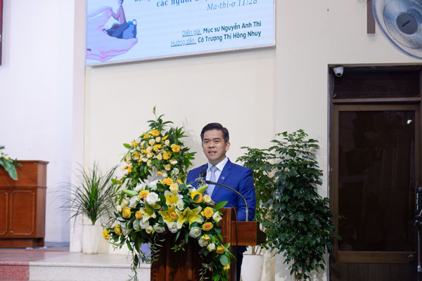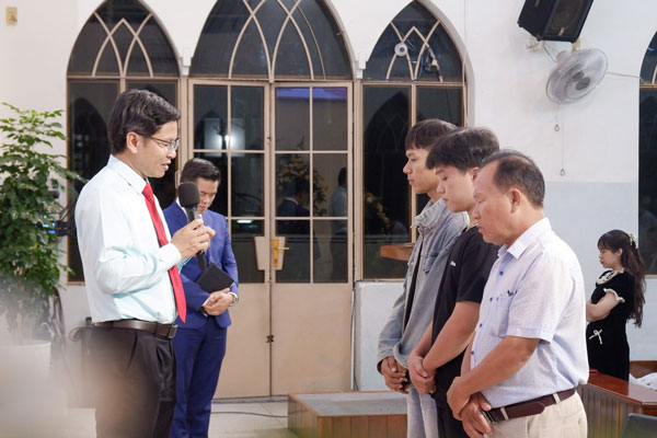 Mục sư Quản nhiệm Nguyễn Công Nghĩa cầu nguyện tin nhận Nguyện Nước Trời ngày càng được mở rộng ra trên đất này.