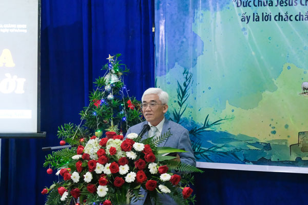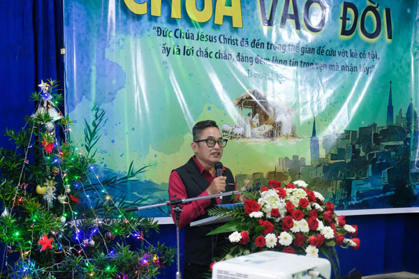 Mục sư Nguyễn Thanh Trà trình bày sứ điệp Giáng Sinh Khu vực Tây Nam có một đêm Mừng Chúa Giáng Sinh phước hạnh.
