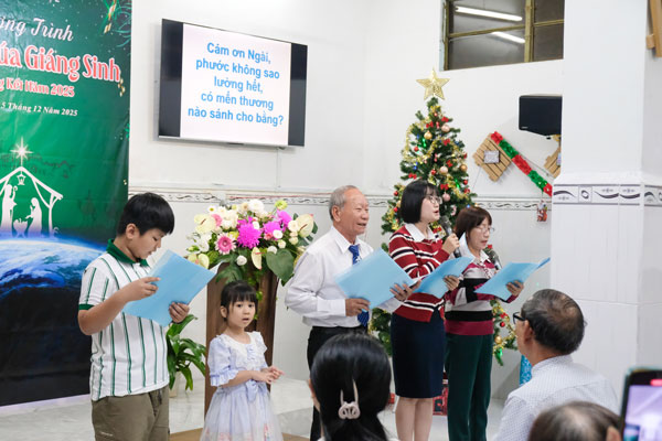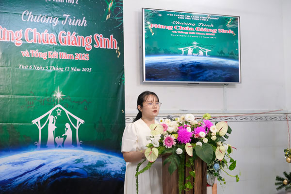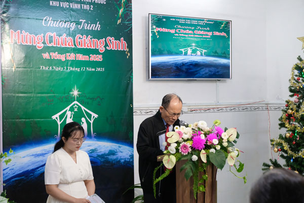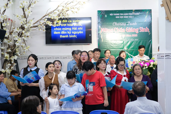 Nằm trong chuỗi các chương trình Kỷ niệm Chúa Giê-xu Giáng Sinh năm 2025 của HTTL Vĩnh Phước, Khu vực Vĩnh Thọ 2 đã tổ chức chương trình “Mừng Chúa Giáng Sinh và Tổng Kết Năm” cho quý con cái Chúa trong khu vực. Chương trình diễn ra vào tối ngày 05/12/2025 tại phòng sinh hoạt Trung niên của Hội thánh trong bầu không khí vui tươi, ấm áp với gần 50 người tham dự.