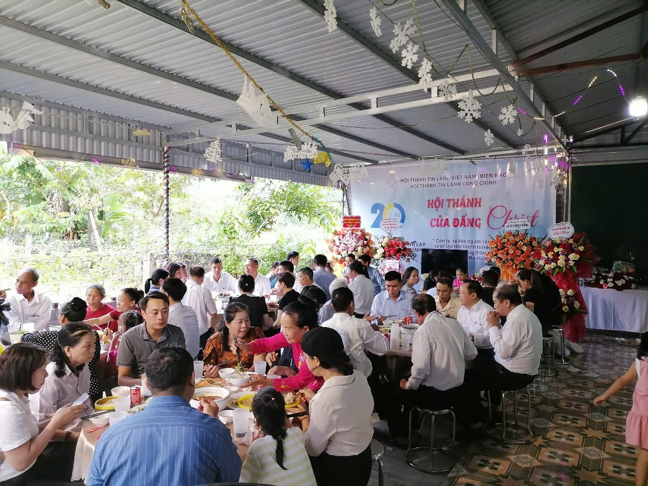Đại diện Hội thánh Vĩnh Phước phát biểu Sau giờ nhóm, Hội thánh Công Chính đã có tiệc chiêu đãi tất cả những người dự lễ Cảm tạ 20 năm thành lập hội thánh cách thịnh soạn, với các món ăn phong phú của địa phương.