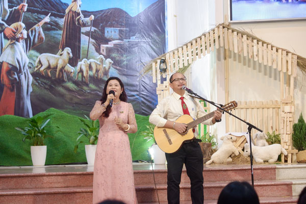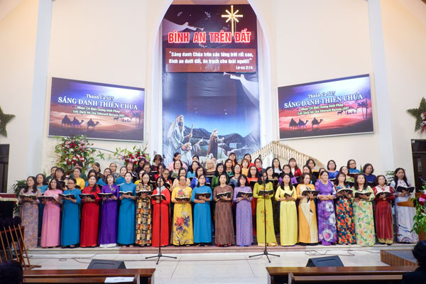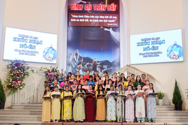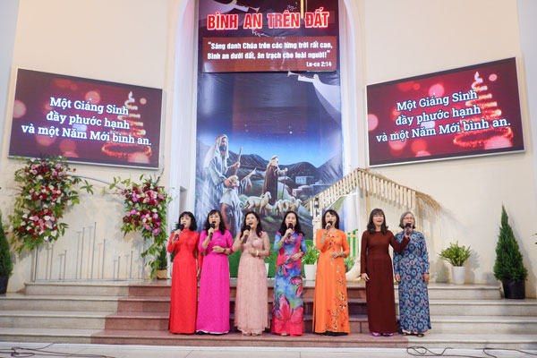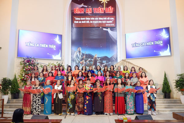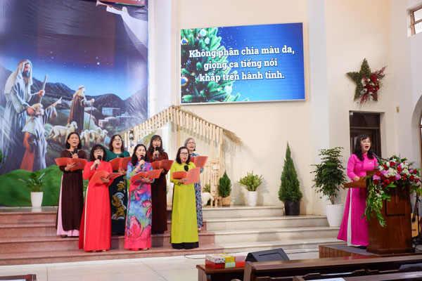 Các bài hát Giáng sinh quen thuộc vang lên qua tiếng hát của các chị em từ các Hội thánh khác nhau. Với nét mặt vui mừng hớn hở, tất cả cùng hòa quyện vào giai điệu vui tươi ngợi khen Chúa giáng sinh đem bình an đến cho nhân loại.