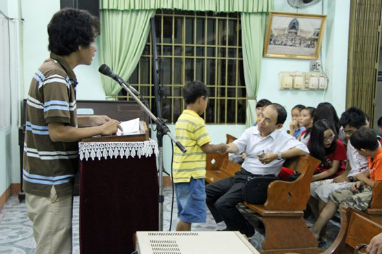 Phát phần thưởng cho các em học sinh có thánh tích tốt