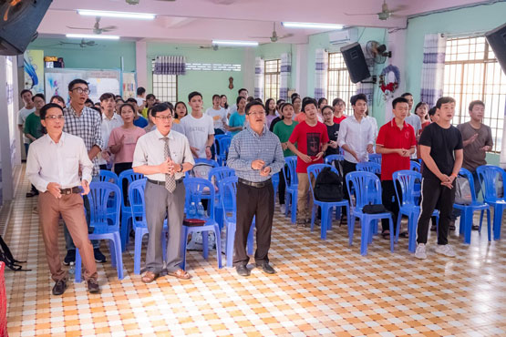 Cs. Đỗ Minh Khánh-Đặc trách Thanh Niên có lời chào mừng, hoan nghênh thành viên hai ban, đặc biệt Ms. Trần Quốc Việt đã nhận lời mời đến dự nhóm và giảng lời Chúa.