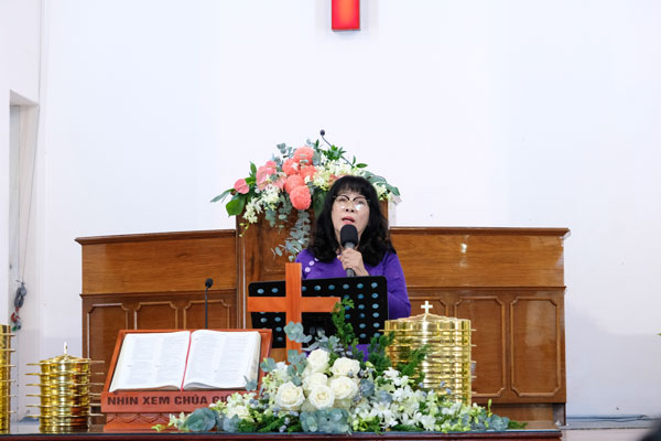 Chấp sự Trần Thị Minh Đức hướng dẫn chương trình