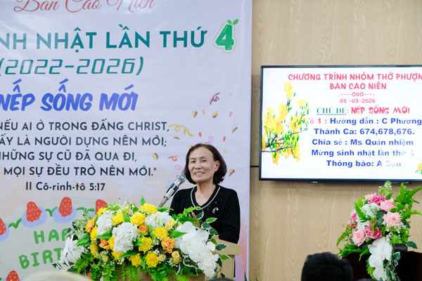 Buổi chiều, Chương trình Cảm tạ mừng sinh Nhật lần thứ IV của Ban Cao niên diễn ra tại phòng sinh hoạt Cao niên vào lúc 14g30, cô Nguyễn Thị Phương hướng dẫn. Có khoảng gần 80 người -gồm các thành viên Cao niên và khách mời- tham dự trong căn phòng được trang trí theo ý nghĩa của ngày sinh nhật.