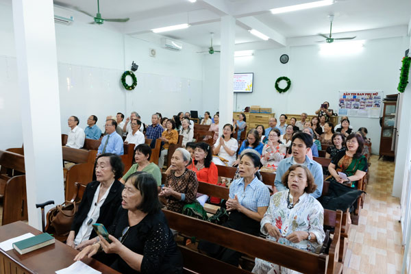 Mở đầu, Ban hát dẫn Cao niên tôn vinh Chúa các bài thánh ca “Lớn bẩy duy Ngài” và “Nào đi lên đoàn quân thánh” cách mạnh mẽ, khích lệ tinh thần con dân Chúa hăng hái tiến bước trong chiến trường thuộc linh Trong giờ thờ phượng, Ban Cao niên ca ngợi Chúa qua các đơn ca, tốp ca, đặc biệt là bài hợp ca “Đường đi có Chúa” được quý ông bà ca ngợi Chúa thật rập ràng và sinh động; tiếp theo là bài tưởng trình của Ban Cao niên qua video clip đã trình bày đầy đủ các sinh hoạt của ban; các hình ảnh và lời bình kèm theo giúp Hội thánh thấy được kết quả đáng mừng Chúa đã ban cho Ban Cao niên trong suốt năm 2025 vừa qua.