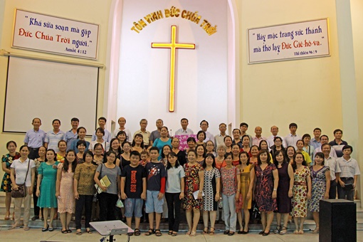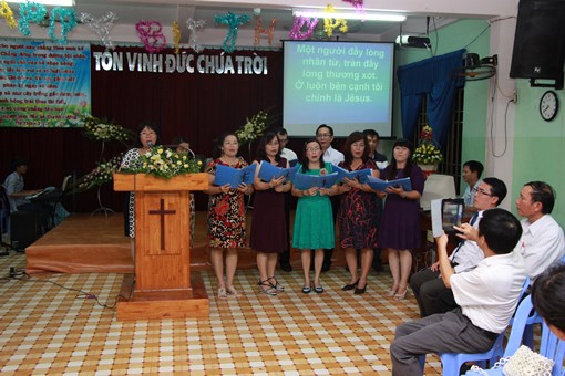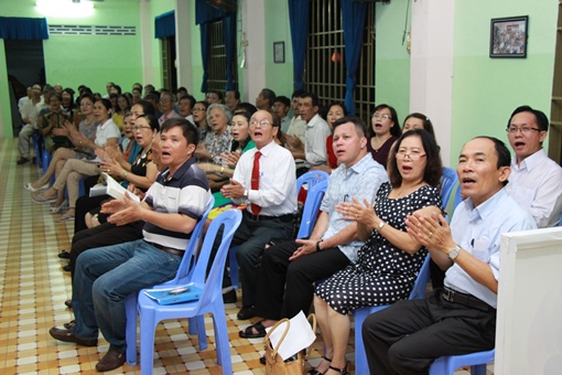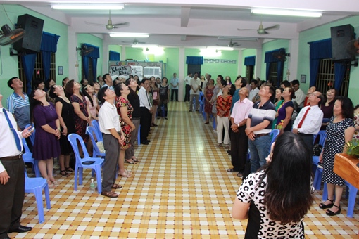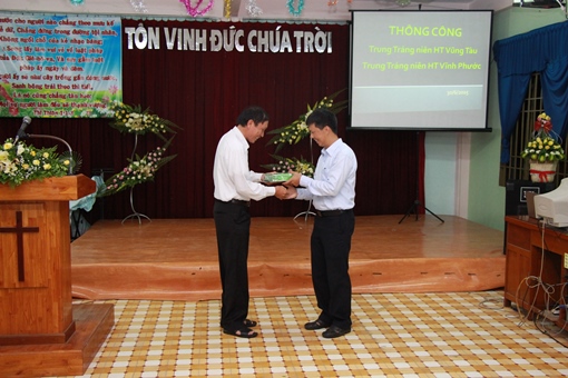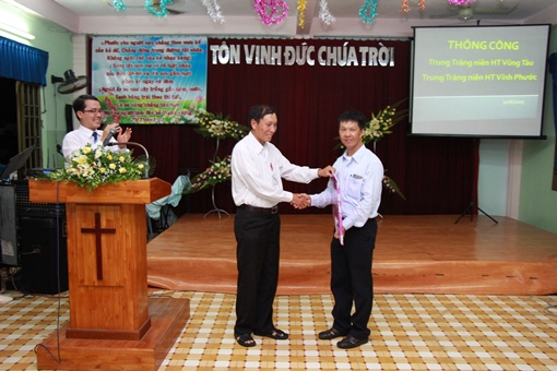 Nhằm tạo sự thân mật và hiểu biết lẫn nhau giữa các con cái Chúa trong hai Hội thánh Vĩnh Phước và Vũng Tàu, nhân chuyến tham quan thành phố biển Nha Trang, Hội thánh Vũng Tàu đã cùng với Trung – Tráng niên Hội thánh Vĩnh Phước tổ chức buổi nhóm thông công vào lúc 19g30 ngày 30/6/2015 tại Phòng sinh hoạt của Ban Thanh niên Vĩnh Phước; Hiện diện có Mục sư Nguyễn Đồng Minh, MsNc Nguyễn Hoàng Thanh Lâm và khoảng 120 tín hữu của 02 Hội thánh tham dự. Chương trình được cô Trần Thị Mỹ Hạnh- Tráng Niên Vĩnh Phước- hướng dẫn cách sinh động. Các ban Tráng niên, Trung niên, và Hội thánh Vũng Tàu đã góp phần Tôn Vinh Chúa qua các bài Thánh ca “Bên tôi là Chúa Giê Xu”, “Người bạn tôi yêu mến”, “Cảm tạ Tình yêu”, “Lớn bấy duy Ngài” cách vui tươi, mạnh mẽ. Mục sư Nguyễn Đồng Minh có lời tâm tình nhằm khích lệ mỗi Cơ Đốc Nhân sống trong niềm tin, sự trông cậy và tình yêu thương. Đặc biệt có phần giới thiệu về Hội thánh Vũng Tàu của Thư ký Bùi Công Bình cũng như phần giới thiệu Trung- Tráng niên của Đặc trách Trung niên Hội thánh Vĩnh Phước để mọi người hiểu biết thêm về nhau.