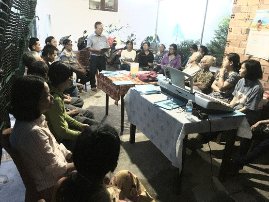 Giờ nhóm bắt đầu lúc 17g30 với phần dẫn hát của cô Phương Hạnh. Mọi người vẫn với tiếng hát vô cùng mộc mạc nhưng được cất lên bằng cả tấm lòng yêu mến Chúa. Hát dường như chưa bao giờ được hát vậy. Hát với nỗi xúc động trong vui mừng đã đưa mọi người đến với Chúa gần hơn.