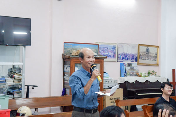 Đầu tiên Trưởng khối Truyền giáo Ủy viên Trần Lê Hiếu đã tổng kết công tác Truyền giáo trong năm qua. So với những năm trước thì số lượng người tin Chúa ít hơn nhưng so với chỉ tiêu đặt ra thì công tác truyền giáo vẫn đạt kết quả.