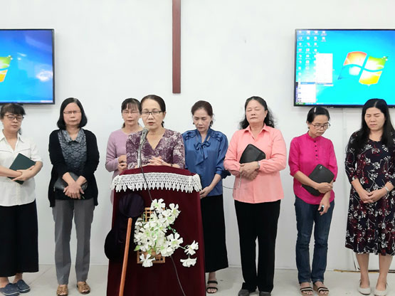 Cô Trưởng ban Nguyễn Thị Hoa cầu nguyện theo sự dạy dỗ đồng thời có lời cảm ơn đến các khách mời.