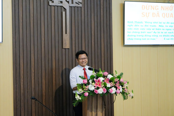 Mục sư Nguyễn Công Nghĩa có Lời Chúa với đề tài “ĐỪNG NHỚ SỰ ĐÃ QUA” nương trên Kinh Thánh Ê-sai 43:18-19 như một lời nhắc nhở rằng Đừng tự hào về quá khứ, đừng đắm chìm vào những thành tích đạt được mà quên những gì Đức Chúa Trời đang hành động trong hiện tại và cả những nghĩa vụ mà Chúa muốn dân Ngài phải thực hiện. Vì vậy hãy tạm thời quên đi quá khứ hào hùng của mình để hướng đến tương lai có Chúa đồng hành với nhận thức rằng Ban Trung niên được Chúa yêu chuộng, được Chúa ban cho địa vị là Chứng nhân, hãy tiếp lấy sứ mạng Chứng nhân ấy để sống đời sống ngợi khen rao truyền danh Ngài. Sự khích lệ cho Ban Trung niên rằng “Ta đã làm nên Ban Trung niên cho ta, Ban Trung niên sẽ hát khen ngợi ta.” Sau đó Mục sư đã cầu nguyện đặc biệt cho Ban Trung niên để trong năm mới này Ban Trung niên sẽ hoàn thành sứ mạng được giao phó và ngày càng mạnh mẽ hơn.