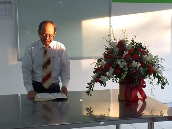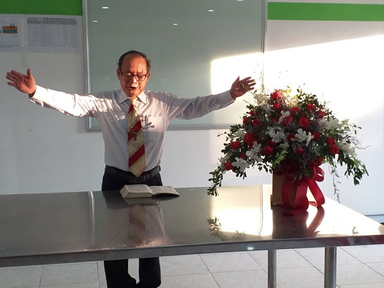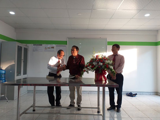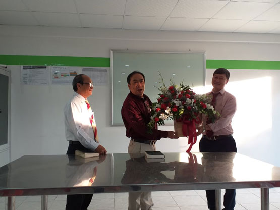 Sau khi nhóm thờ phượng Chúa và nghe lời làm chứng về những ơn phước Chúa ban cho gia đình trãi suốt năm qua, MS QN chia sẻ lời Chúa trong Thi Thiên 23. Thư ký HT Lê Khắc Hiếu tặng lẵng hoa tươi thắm chúc mừng cho Công ty đươc thịnh vượng mọi mặc trong ơn Chúa.
