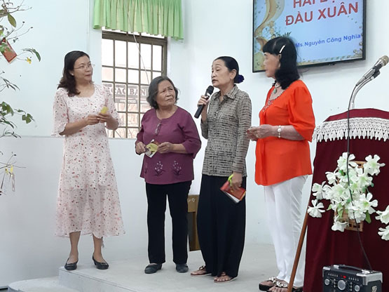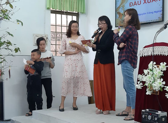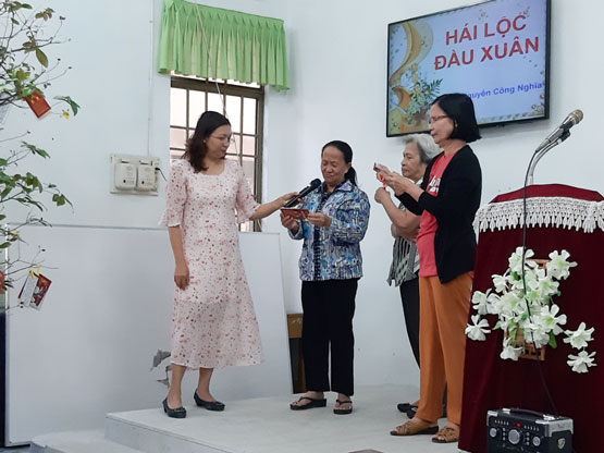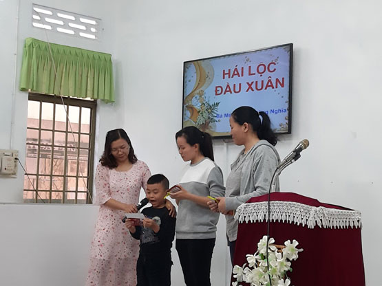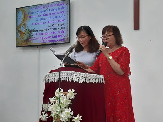 Tiếp theo là phần sinh hoạt chủ đề "Hái lộc đầu Xuân" do Phu nhân Mục sư Nguyễn Công Nghĩa phụ trách. Mỗi người được nhận một bao lì xì cùng một câu Kinh Thánh để gây dựng Đức tin. Bên cạnh đó, một vài người được nhận thêm câu hỏi phụ có cơ hội làm chứng và hát tôn vinh Chúa. Vui vẻ, dí dỏm khiến cho giờ sinh hoạt tràn đầy tiếng cười sảng khoái. Thật cảm tạ ơn Chúa!