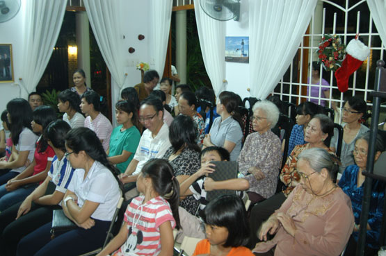 Ông Nguyễn Hoàng Thông hướng dẫn chương trình thờ phượng. Những bài Thánh ca Giáng sinh ngân vang đã đem lại bầu không khí ấm áp vào lòng dân sự Chúa, như nhắc nhở khu vực chuẩn bị Kỷ niệm Chúa chào đời.