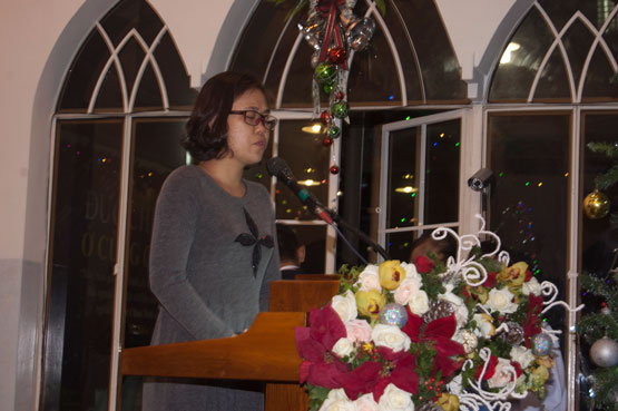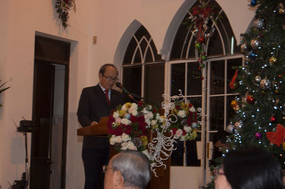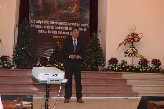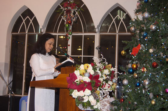 Hướng dẫn chương trình Uv. Phan Đặng Trường An và Tq. Huỳnh Thị Mỹ Huệ. Chương trình diễn ra trang nghiêm cảm động với nhưng tiết mục của các ban hát và Ca đoàn Hội Thánh, Ms. Quản nhiệm chia sẻ lời Chúa với chủ đề: "ĐỨC CHÚA TRỜI Ở CÙNG CHÚNG TA", câu gốc Ma-thi-ơ 1:23. Phần tất lễ, MsTr/s. Huỳnh Sỹ Hùng cầu nguyện và chúc phước.